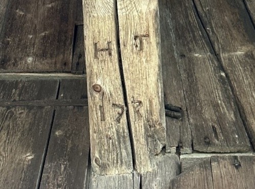 Die Inschrift «HT 1731» an der 1731 erbauten Scheune beim «Jochehaus» ermöglichte ein Abladetenn mit einem grösseren Kuhstall und Heustock. Zudem entstand Platz für eine zweite Wohnung. (Bild: Annina Sandmeier)